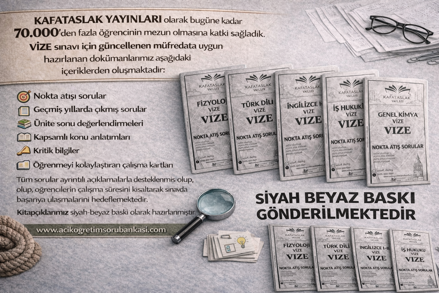 Açıköğretim öğrencilerinin sınavlarda en yüksek başarıyı en kısa sürede elde etmelerine yönelik olarak hazırlanmış olan Kafataslak Kitap, içerik kalitesi ve sınav odaklı yapısıyla benzersiz bir öğrenme deneyimi sunmaktadır. Eğitim hayatını daha verimli ve etkili hale getirmek isteyen öğrenciler için, Kafataslak Kitap’ın tercih edilmesi için başlıca sebepler aşağıda sıralanmıştır: